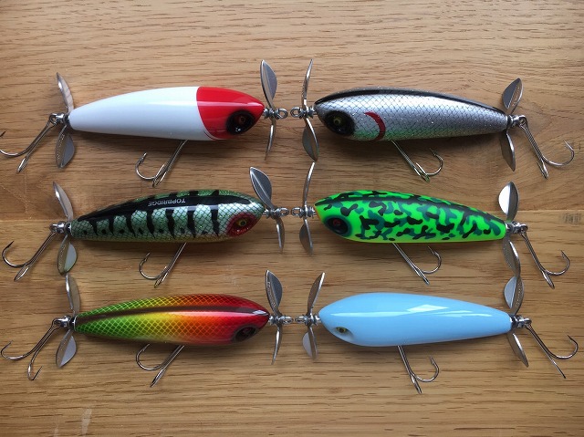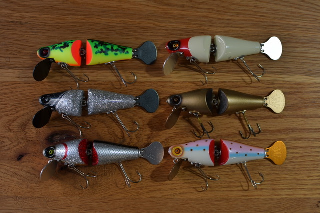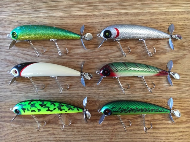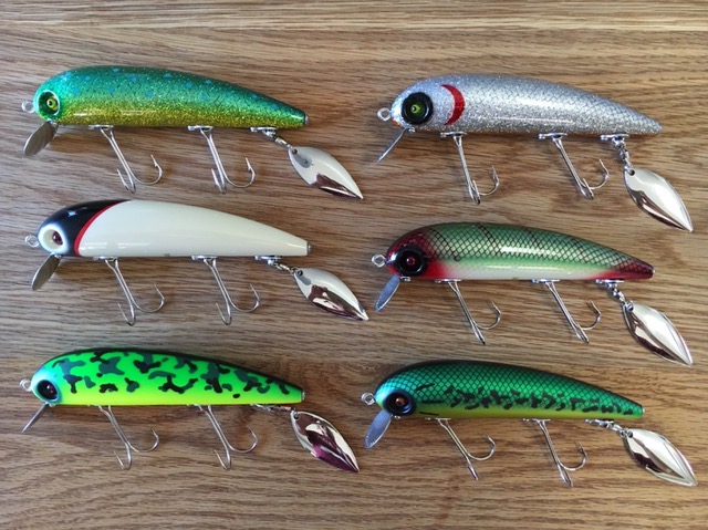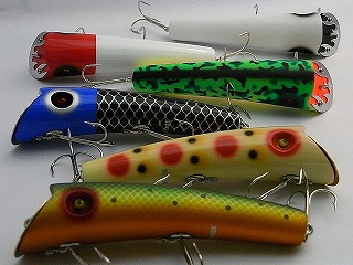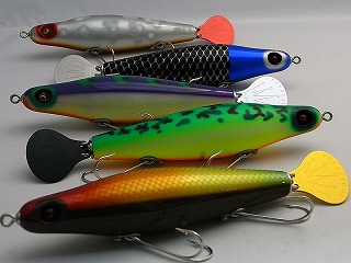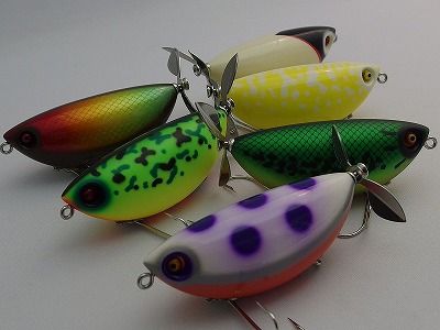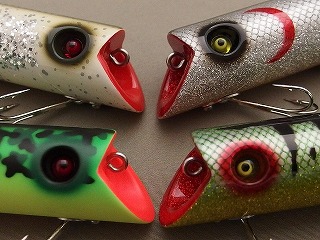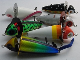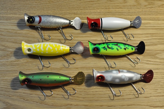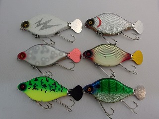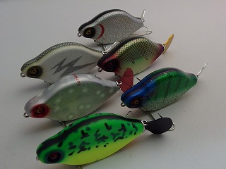 写真左上から下にRHF、G-Perch、 Sunset 写真右上から下にG-Shad、 HHT(マット)、FKTB